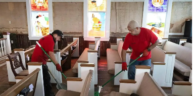 UMCOR volunteers working to clean out a church after the devastating floods of September's Hurricane Helene.